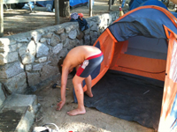 Wir kannten den Platz. Etwas oberhalb ließ uns der Fahrer des Busses hinaus; den restlichen Weg stiegen wir ab. Meldeten uns an. Alles völlig problemlos.Sogar ein WiFi gibt es hier, das auch funktioniert. Ah, ich verstehe: BritelCom. Die Stunde ist teuer – zehn Stunden aber, zwanzig Euro, rechnen sich (sofern ich nicht wieder mit meiner Löwin in ein skypendes Zucken gerate).