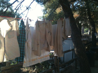 4. Das kenn‘, liebe phyllis, ich auch, aber es waren weder T-Shirts noch Hemden, allerdings auch nicht die Monatsbinden. Das Hemd an sich erinnert tatsächlich an einen Besuch, dem man hier immer wieder Gegenbesuche abstatten kann. Gut, ich lasse es hängen. Der Staub, der sich darauf ablagert bis zum nächsten Jahr, wird die Zeit sein. Dies wird untrüglich mein Verhältnis zu ihr ausdrücken.