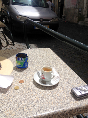Vorm Musical-Theater saßen die drei Instrumentalisten des Astor-Ensembles, Baß, Klavier und Schlagzeug, und winkten mich zu sich auf einen „Vinho pressione“. Sie hatten schon einigen Gläsern herzlich zugesprochen, „immer“ erzählte Nicolae, „wenn ich in Lissabon bin, komme ich genau hierher, auf gradem Weg vom Hafen, setze mich hin und trinke diesen Wein, bis ich wieder an Bord muß“. Mich aber zieht es noch einmal den Burgberg hinauf, um dort in einem Gassenwinkel, wo zweidrei Stühle draußen stehen, einen letzten Caffè zu nehmen und einen Cigarillo zu rauchen. Um zu sinnen. Noch nie, wenn ich nach Europa zurückkam, verspürte ich solch ein Heimatgefühl. Ich bin kein Deutscher, dachte ich, sondern ein Europäer, der so ein Deutscher ist, wie in Deutschland ein Bayer ein Bayer, ein Sachse ein Sachse und einer aus Hessen ein Hesse.