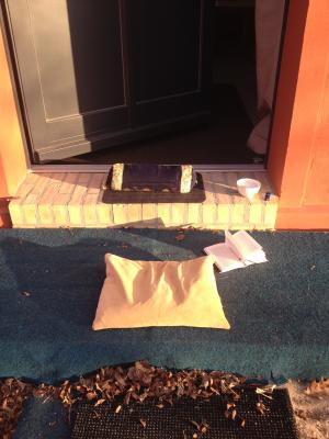 Die Freunde schlafen noch, doch aus der Ferne dieses riesigen Hauses vernehme ich SichRegen. Wie vor >>>> Parallalies umbrischem Cortile lesend in der Tür gesessen; noch liegt Frost in der klaren Luft.