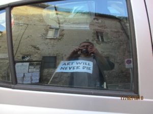 Fremde Leute waren da und bewegten sich zu irgendeiner leisen Musik im Kreis, die an Irisches erinnerte. Bekannte aus Nachbarschaft und Umgebung hielten sich eher an der Umfassungsmauer auf, Er, ein Römer, der auf ihr lag, ganz am Anfang als ich hinkam. Ausruhen. Meinte er. Garbatella (ferne Erinnerung an das Viertel, als ich anfangs noch per Inserat Deutschlektionen gab, denn da war so eine, wo ich drei- viermal war: es roch immer penetrant nach Kohl).
