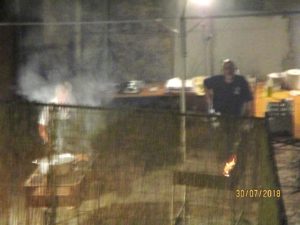 Und dann im Dunkeln Feuerknechte, besorgt um Fleischspieße für die Taverna, dieser zweiwöchigen Massenverköstigung, deren Tische in diesem Jahr – wie schön für mich – auf dem Rathausplatz und nicht wie sonst unter meinen Fenstern stehen.