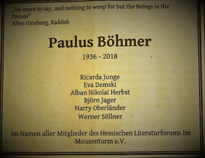 [Von Volltext habe ich den Auftrag, für die Märzausgabe über den verehrten Freund einen längeren Artikel zu schrieben. Deshalb füge ich den bisherigen Nachrufen nun doch keinen in Der Dschungel eigens hinzu. Leider war es für Volltexts jetzt kommende Ausgabe zu spät, da sie sich bereits in Druck befand.