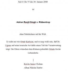 Hauptseite / Tagebuch Der Sohn - 30. Januar 2020 | 31. Januar 2020 - Alban Nikolai Herbst 1 minute read [Geburtsanzeige 30.1.2000]