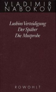 Was so oder so auffällt, ist die ungewöhnliche Liebe, die Nabokov in der Mutprobe für seine Figuren hat, eine fast grundsätzliche Zuneigung, die dem Gelächter im Dunkel komplett fehlt. Die Mutprobe ist nicht nur ein ungemein zärtliches Buch, sondern wieder mit sprachlichen Schönheiten und „Bildern“ angefüllt, die dem Gelächter abgehen — so daß ich mich frage, ob ich dessen Übersetzern → nicht eigentlich etwas unrecht getan habe, als ich von einer gewissen Holzigkeit schrieb, der Nabokovs elegante Stilistik bisweilen abgehe. Wie also ist der Unterschied zu erklären? Hier, in dem direkt vorherigen Buch, ist sie in reinster Erscheinung von Seite 1 bis 251 zuhanden. Wobei ich abermals ein antiquarisch erworbenes Taschenbuch, rororo 1977, und nicht in Rowohlts von Dieter E. Zimmer kommentierter Ausgabe der Gesammelten Werke las.