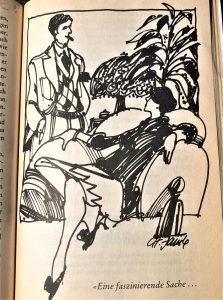 Tatsächlich hat Rowohlt damals in seinen Taschenbüchern diese insofern intelligente Anzeigen geschaltet, als sich die Werber stets eine Geschichte einfallen ließen, die einen Bezug zu dem entsprechenden Buch herstellten. Hier gipfelt sie in der Wähnung, es zögen „etwas bürgerlichere Naturen als Martin (…) vielleicht weniger riskante Möglichkeiten vor, ihr Geld zu vermehren“, was wiederum den Witz hat, daß ein Taugenichts solchen Möglichkeiten überhaupt nicht erwägt. Denn was er braucht, das fällt ihm zu.