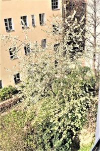 im Hinterhof weht baumhoch der Wind in Tausenden weißester Blüten. — Ach, daß ich den Baum nicht mal nennen kann!