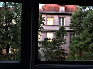 1. Lacht gen franzsummer. – Nein, hat sie nicht. Das wär denn doch etwas zu intim gewesen, also ob nun sie mich -und auch noch „von sich aus“ – fotografiert oder ich sie gebeten hätte, es zu tun. Zumal entfaltet manches seinen besonderen Reiz in der Imagination. – Also die schnöde Wahrheit ist, daß es sich bei dem Bild um ein banales Selfie handelt, immerhin am „richtigen“ Ort, also in dem Besucherzimmer, in dem auch mein heutiger Beitrag entstand und die Ärztinnengespräche geführt wurden.
