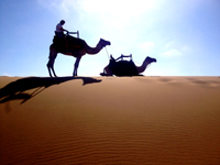 Ich war froh, von dem Dromedar herunterzusein; den ganzen Tag über war mir von seiner Schaukelei, aber auch morgens mit dem Aufwachen schon, unterschwellig schlecht gewesen — eine der typischen, allerdings nicht so schlimmen „Neben“wirkungen der Nefud, daß ich hätte → einen der Blauen Fische schlucken müssen. Das habe ich bislang erst nur einmal getan, vorgestern, und es hatte schon deshalb nicht viel gebracht, weil mir nicht klar war, woher die Übelkeit rührte, ob tatsächlich von der Nefud oder daher, daß ich auf ein bestimmtes Essen mit Widerwillen reagierte. Passiert mir nämlich grade dauernd.