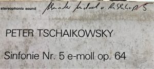 Nummer 5: Es ist Tschaikowskis Fünfte Sinfonie in einer Billigpressung der Gloria, damals, ich erinnere mich, für 5 DM zu bekommen, als es „normale“ Schallplatten noch nicht unter 25 DM
