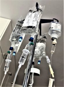 Na gut, Dir wird danach nicht gewesen, ich muß ja nur schauen, wann Du Deine Nachricht geschrieben hast. Da ließ der Beutel EIns von VIeren bereits sein Innres in mich tropfend, sagen wir dennoch: strömen. Schon wirst Du nach Luft gerungen haben, doch vergißt, scheint es mir, ständig, daß ich dies auch mir selbst antu, was Dich jetzt so quält. Und, hör doch, tu ich’s nicht, quälst nur noch Du – und mich. So war es wieder in den letzten vier Tagen. Zehn Tage nach der Infusion merke ich Dich gar nicht mehr oder nur kaum; dann reichen mein Dronabinol und die THC-Tropfen völlig. Doch ab Tag 11 rührst Du Dich wieder, erst als dieser vertikale Schmerz, der vor allem etwa eine Stunde nach Beginn eines Spaziergangs auftritt, dann schon als Bauchschmerz nach dem Essen. Nun muß ich, was ich sonst vermeide, auf Novaminsulfon und Pantopraxol zurückgreifen — was mit Beginn der jeweils nächsten Chemophase sofort wieder unnötig wird. Und ja – Du scheinst es ständig zu vergessen –  ja, ich schädige meine eigenen Zellen, weil eben auch Du aus deren einiger bestehst, Leib von meinem Leib wie nur die Kugelwesen noch gewesen, von denen bei Platon Aristophanes erzählt.  Ich schlag auf Dich (nachdem Du, vergiß das nicht, mich angegriffen, sogar am Essen gehindert und Schmerz auf es gelegt) und schlage damit mich.