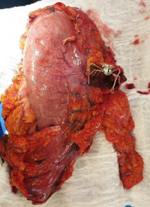 Wie ein kleines Tier, hörte ich, habe sie sich gewehrt und selbst noch an der Bauchspeicheldrüse mit aller verbliebenen Kraft festgekrallt, um, nachdem die Speiseröhre aufgegeben werden mußte, aus ihrer Heimat nicht gänzlich herausgerissen zu werden und jenes Biotopes verlustig zu gehen, außerhalb dessen ihrer Art kein Leben weiter möglich. Die Operateure waren dabei so kunstfertig, mich nicht mit hinauf-, bzw. hinabreißen zu lassen, was doch leise zu befürchten stand., so daß aus der Ent- einer endgültige Vereinigung geworden wäre. Sie waren, diese Ärzte, Künstlerinnen und Künstler ihres Fachs, die gleichwohl, da das → Allfleisch mit dem Magen so ungewöhnlich verklebt, einen kleinen Teil der großen Drüse mitextrahierten, ebenso wie die gesamte Gallenblase, auf die der Magenschleimhaut Entzündung ziemlich ungut übergesprungen, sowie dreißig, des unteren Magens, Lymphknoten. So blieb nach der erfolgreichen und, hieße es nachher, komplektionsfreien Operation dennoch eine Restunsicherheit, zu deren Klärung meine herausgeschnittenen Organe, bzw. Organteile noch am selben Tag ins Labor zur histologischen Untersuchung geschickt wurden – ans östliche Ende der Aqabastadt. Dies alles bei, was im Herzen unsrer Wüsten nicht verwundert, 36 Grad im Schatten, die ich in meinem Krankenzimmer – dem nach der Intensivstation nunmehr dritten – auch nicht antasten wollte. Dabei wurde ich dauernd von den Schwestern („Schwesterinnen“?) gefragt, ob sie mir nicht besser die Jalousien herunterlassen sollten ..? – Jedes Mal protestierte ich, nicht zuletzt, weil mir ein wenig war, als wäre ich auf Sizilien geblieben, wohin es mich bereits wieder zieht — nicht zuletzt, um eine poetische Formklammer um die Geschehen zu legen, bevor ich mich, möglicherweise, auf die Rückreise durch die Nefud begeben werde: begeben muß, wahrscheinlich, auch wenn ich’s derzeit scheue, weil weder die breite Bauchwunde schon verheilt noch gar die Darmtätigkeit wieder in Ordnung ist. Vor einer postoperativen Chemo hätte ich das gerne erledigt gewußt, anstelle den Körper nun noch einmal derart hart zu attackieren. Am Montag habe ich eine Besprechung mit Doktor Faisal; da werde ich denn, hoff ich, weitersehen. In jedem Fall bin ich vorübergehend, vor neuem Aufbruch durch die Nefud, zurück in meiner Arbeitswohnung.