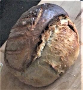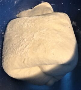 Um mich abwer nicht so sehr davon, doch von der Mißlichkeit abzulenken, daß ich selbst derzeit kaum etwas zustande bekomme, und um wenigstens anderweitig kreativ zu sein, habe ich gestern wieder einmal ein Brot vorbereitet, den Teig angesetzt und gut geknetet sowie über Nacht im Kühlschrank fermentieren lassen und heute früh bereits auf der gemehlten Holzplatte zweimal, je in in Länge und Höhe gezogen, gefaltet, was in den kommenden drei Stunden noch dreimal wiederholt werden, bevor in vieren der dann tüchtig, so hoff ich, gegangene Laib in den Ofen kommen wird.