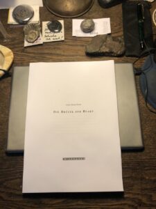 so?) „-pflegen“ — und endlich fliegt das Typoskript zum Verlag, wo es wohl doch nicht mehr dieses Jahr, aber gleich zu Anfang des nächsten erscheinen wird — und sehr schnell werden die Übersetzungen folgen, die bereits beautragte, an der auch schon gearbeitet wird, ins US-Amerikanische, die ins Französische, die ins Italienische (an der → dank des Freundes zumindest schon herumgedacht wird). Sowie sind Elvira und ich zum nächsten Projekt übergegangen, der von Arco geplanten N