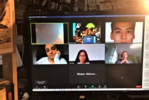 Dennoch, bei all diesen Unbillen, kamen einige bemerkenswerte Texte heraus, und wären nicht die dauernden technischen Schwierigkeiten gewesen, ich hätte allmählich großen Spaß an dieser Art des Lehrens bekommen— einfach, weil ich hier am eigenen Schreibtisch, meinem sowohl realen wie virtuelle Cockpit also, unmittelbar auf alle nur denkbaren Medien zurückgreifen und sie übermitteln kann, etwas, das in realen, ich sage einmal: Klassenzimmern nicht einmal denkbar ist, schon aus Gründen des Urheberrechts. Jedenfalls hatte ich unterm Strich den Eindruck, die Teilnehmerinnen und Teilnehmer seien denn doch recht zufrieden und sogar darüber ein wenig überrascht gewesen, wie gut solch ein Seminar auch virtuell läuft. So kam es dann auch zu diesem Abschluß-Gruppenfoto noch: