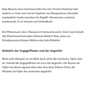 Es sind Menschen, die in Notwehr kämpfen. Mit „Heldentum“ hat das nichts, aber auch gar nichts zu tun.