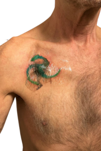 Ein überaus interessantes Tattoo, insbesondere weil es so widersprüchlich erscheint. Einerseits cyborgig, schon wegen des Bioimplantats, wirkt es, aufgrund der Farbgebung, Zeichnung und nicht zuletzt Ihrer ausführlichen Erzählung, vollkommen organisch. Gleichzeitig spricht die Präzision eindeutig für etwas Gemachtes, zu perfekt, um natürlichen Ursprungs zu sein. Es ist schaurig schön, mit der Betonung auf schön. Ein Mal, auf das man am liebsten verzichten möchte, schon wegen des Anlasses, aber eben eines, das so viele und so vielfältige Aussagen trägt und trifft, dass es schon fast poetische Züge zu haben scheint. Provokativ könnte man vielleicht von rechtschaffenem Kitsch sprechen? Wenn ja, dann ist er von einer Art, die mir persönlich sehr wertvoll ist, auch wenn er selbstredend Ihnen allein gehört. Wie so oft, wenn ich vor Ihrer Kunst „stehe“, mischt sich auch jetzt wieder gefühlter Erkenntnisgewinn mit völliger Ratlosigkeit. Bitte seien Sie großzügig und sehen Sie mir dies nach …