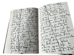 | ↑1 | Nur zur Erläuterung. Wenn im Notizbücherl Seiten durchgestrichen sind, bedeutet das, die Texte seien bereits in die zugehörige Datei übertragen worden. Erst danach, in aller Regel, erfolgt die Einbettung in das Typoskript. Wobei ich während der Übertragung aus der Handschrift meist schon umformuliere und/oder aus der Erinnerung ergänze, die von der Wiedervergegenwärtigung aktiviert wird. |