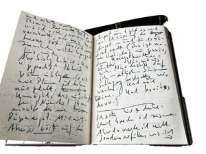 | ↑1 | Nur zur Erläuterung. Wenn im Notizbücherl Seiten durchgestrichen sind, bedeutet das, die Texte seien bereits in die zugehörige Datei übertragen worden. Erst danach, in aller Regel, erfolgt die Einbettung in das Typoskript. Wobei ich während der Übertragung aus der Handschrift meist schon umformuliere und/oder aus der Erinnerung ergänze, die von der Wiedervergegenwärtigung aktiviert wird. |