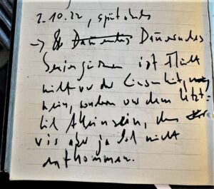Dauerndes Seriengucken ist Flucht nicht vor der Einsamkeit, nein, sondern vor dem letztlich Alleinsein, dem wir aber ja doch nicht entkommen. Notat 2.10.22, spätabends |