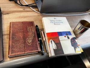 werde ich ein Annoncement für morgen Abend für Die Dschungel bauen und einstellen, danach möchte ich lesen, einfach nur Sabine Grubers→ Die Zumutung weiterlesen (zu dem Buch erst später). Nach Ankunft, gegen halb zwölf, gleich rüber ins Mola, wo ich zur Schlüsselübergabe und gmeinsamem Essen Do treffen werde. Danach in ihre Wohnung, die für sie vor allem Arbeitsraum ist, aus dem Rucksack nehmen, was nicht Buch ist, dann mir ihm ins Literturforum, dann muß ich nicht zur Veranstaltung morgen mit dem Rucksack einfallen, könnte ihn abends sogar dort lassen, um ihn im Lauf der Woche mitsamt der Bücher wieder abzuholen. Mal sehen. — Weshalb schon heute ins Forum, fragen, Freundin, Sie? Mitgliederversammlung, ein. bis zweimal jährlich ist sie, ich schreibe mal, „fällig“. Diesmal bot sich der Sonntag wegen morgen der Veranstaltung an; wenn ich denn eh schon mal da bin.