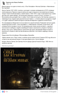 Liebe Freunde, wir haben Felix Svetovs Experience of Biography und Zoya Svetovas Innocent in Druck gegeben.