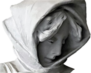 Ich hatte gerade w i e d e r so ein magisches Erlebnis. Aldona v. Hüon ist Dir ja ein Begriff. In dem Triestroman, an dessen Ende ich nun komme, gibt es eine Elbenfigur namens Nimueh, die dem Erzähler begegnet und die der Frau v. Hüon fast erschreckend gleicht, nur sehr viel jünger aussieht, etwa wie 20/22. Sie spielt im Finale des Buches eine riesige Rolle. – Nun weißt Du ja, daß ich hier eine Bronzebüste stehen habe, die ich in Frankfurt fand – oder sie fand mich -; ich sah sie durch ein Schaufenster, zusammen mit Do. „Aber das ist ja Alda!“ rief ich, und Do hat die Figur sofort gekauft. Und jetzt halt Dich fest. Sie hat einen Namen als Punze eingraviert: Alda. Auch signiert ist die Figur, auf der Stehseite. Früher Jugendstil. —