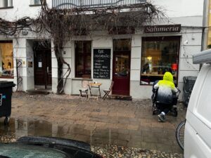 Es regnet scharf an diesem zweiten Weihnachtstag. Da ist in der Kopenhagener Straße das Sigismondo ein nach italienischem Backwerk duftender Schutzraum, ja eine Höhle, in die das Menschentier vor dem Unwetter flieht