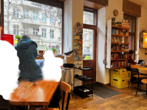 — als aber die außen zwar abgestoßene, dennoch beinah leuchtend braunviolett, innen indes samtbraun lackierte Tür nicht nur knallt, nein, sie kracht ins Schloß dernapoletanischen Stammbar meines Verlegers Držečnik, dessen Verlagssitz nah in der parallelen Gaudy gelegen, einer Kaffeebar also, aber auch, wie ich grad erst mitbekommen, Hendrik Jacksons, der sie mir für ein poetologisches Plauderstündchen vorgeschlagen hatte: Es gebe dort den besten Espresso des Prenzlauer Bergs. Da war noch Sommerwetter gewesen, Herbstsommerwetter, und wir hatten uns auf der Staße direkt unters linke Fenster an einen der paar Holztische gesetzt, die auf der einschluß- und glimmerreichen Steinpflasterung des zwar ausgetretenen, doch berlinisch breiten Trottoirs stehen. Doch erst, als ich, um an der Theke etwas nachzuordern, den zugleich als Salumeria eingerichteten Vorraum betrat, hatte ich bemerkt, daß ebenfalls er, Ingo Držečnik, da gewesen war; nur hatte er drinnen vor dem rechten Fenster gesessen, eben dort, wo ich jetzt sitze, als eben die schöne Tür derart in den Rahmen kracht. Für nach innen zu öffnende Flügel eigentlich nicht zu erwarten … – doch wenn im Küchenräumchen jemand lüftet, und plötzlich böt solch ein Orkan auf, kommt es schon mal vor. Nur krachte es jetzt dermaßen, daß es einer Sprengung gleichkam und ich nicht nur zusammenfuhr, nein, mich auf meinem Stuhl instinktiv vor- und über mein kleines Reisebackgammon duckte, weil ich nicht ‚befürchtete‛ – das läßt sich nicht sagen, denn etwas zu denken, war nicht die Zeit –, sondern unter meiner gesamten Haut spürte, vorausspürte, wie der Ineinanderprall von Türblatt und -stock das in den schmalen hölzernen Blattrahmen eingepaßte Fensterelement geradezu explodieren ließ. Tausende Splitterschrapnells durchprasseln den Raum. Aber nicht mal hat die Lackierung sichtbare Macken, auch das Glas hielt wieder mal stand. /span>„Chiudi quella fottuta finestra!‟ schimpft hinter der Theke Salvatore über die Schulter nach hinten. Nur hat die Bö eine Art Nebel aus Regen, aufgepeitschtem Dampf und wirbelndem Laub mit hereinwogen lassen, der sich nun erst senkt, da die Tür zu, und aus den Milliarden feiner Teilchen Arndts Gestalt sozusagen sich herausschälen läßt; fast hab ich den Eindruck, er habe sie als Tarnung genutzt. Bei ihm ist sowas zu erwarten, zumal er in dieser Substantiation trotz seiner kaum einsfünfundsiebzig wohl nicht zuletzt des wuchtigen, unangenehm speckig glänzenden Gewehrkoffers halber ausgesprochen riesig wirkt, den er links in der Hand trägt; ‚schleppt‛ trifft es besser. Daß es einer ist, muß ich nicht raten. Obwohl… – ich meine, es ist in meiner Gegenwart das erste Mal, daß er so einen nutzt; bislang hat er den Platon genannten Bärentöter immer offen getragen. Doch in Berlin läßt er das Gewehr besser wohl schlafen, wo sowieso schon die Last Generation halb unsre woke Hipsterwelt in eine Aufregung versetzt, deren Hysterie mit den Sorgen beinahe gleichgezogen ist, die der russische Angriffskrieg vor allem wegen der Teuerungen auch in den