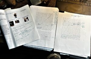 Hochkomplizierter Überarbeitungsgang heute: Datenkonfusionen mußten geregelt werden, dazu gingen die Namen der Kinder der Protagonisten durcheinander; insofern dauerndes Springen von vorne nach hinten mit dauernden Halten mittendrin. Ein Segenn, daß ich mit mehreren Bildschirmen arbeiten und auch noch das iPhone hinzunehmen kann.