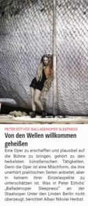 Peter Eörvös‘ „Opera Ballad“ Sleepness, leider mal ein wirklich Verriß; zum anderen über