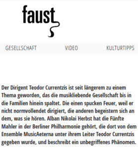 So unterschiedlich beide sind, Joana Mallwitz hat einiges von Currentzis, oder der von ihr. Auch bei ihr diese glühende Intensität. Und selbst, wenn wiederum er vierzehn Jahre älter als sie ist, war er – zumindest bis zum Ausbruch des Ukrainekriegs – ausgesprochen jugendlich und inszenierte dieses auch, eitel zugleich wie sympathisch; ein produktiver Narzissmus: Sein Beseelenkönnen anderer (die „männliche“, bisweilen, Rechthaberei mal beiseite) kommt dem der Mallwitz gleich; hinreißend zu beobachten war’s, und glücklich darüber zu werden, welch Feuer er dem geschundenen SWR-Orchester zurückgab. Hier trägt es s i e ins Konzerthausorchester hinein.