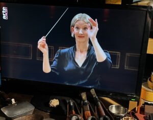 Sie wissen, Freundin, ich bin privilegiert mit meiner Musikanlage. Und weil ich laut hören wollte und es doch schon so spät war, nahm ich meine Staxe. Höchst fraglich, ob ich im Konzerthaus ähnlich klar hätte hören können – zumal am großen Bildschirm sehr viel besser zu beobachten ist als in der Totale des direkten, aber eben entfernten, manchmal sogar weit entfernten körperlichen Dabeiseins. Denn worauf kam es mir an? Ich wollte die Interaktion sehen, wie dirigiert diese Frau im realen Konzert? und eben nicht in den Proben, von denen ich Aufzeichnungen, wie erzählt, bereits kannte. H ä l t diese ungemeine, bei gleichzeitig extrem musikantischer Leidenschaft, Menschlichkeit?