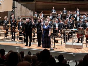 Ist es ein neuer Geist, ein heiliger aber der Erde? Die Ovationen jedenfalls, nachher, hörten nicht auf — nicht nur des vollbesetzten Saales, nein, auch der Künstlerinnen und Künstler untereinander; selbst hinterm Bildschirm spürt‘ ich das Glück. Die Mallwitz mochte gar nicht mehr aufhören, die einzelnen Musikerinnen und Musiker ins Rampenlicht des Applauses zu heben, und diese … sie strahlten ihre Dirigentin alle, alle an.