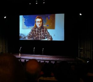 Stein rutschte entnervt hin und her, ich vergrub mein Gesicht in den Händen. Wer hatte die Vortragenden ausgesucht, nach welchen Kriterien? Nach poetischen ganz sicher nicht, nach Bekannheit aber auch nicht; dazu spreizten sich z u viele NoNames auf der Bühne, nicht selten ziemlich peinlich. Eine Dramaturgie gab’s erst recht nicht, die sich so nennen hätte lassen, geschweige daß die Autorinnen und Autoren vorher geprobt hätten, wie man’s vor Auftritten tut. So dass ich doch recht froh war, nicht meinerseits gefragt zu haben, ob ich zu diesem Anlaß mit auf der Bühne lesen könne. Was ich, um meine Haltung zu bekunden, eigentlich gern getan hätte. Freilich gab es zwischendurch auch mal einen Lichtblick, einfach menschlich einen persönlichen Vortrag wie den des grad aus Israel rückgekehrten ZDF-Journalisten, der Kunst gar nicht im Sinn hatte, „bloß“ Dokumentation und seine Liebe dort zu den Freunden.