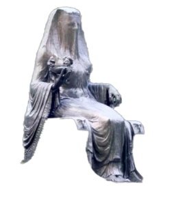[Wer’s dennoch tut, stirbt oder wird von Wahnsinn umschlagen, also selbst zu einem Geheimnis. Er geht in es ein, oder sie.[1]„… und wenn kein Sterblicher, nach jener Inschrift dort, den Schleier hebt, so müssen wir Unsterbliche zu werden suchen.“ Novalis, 1799]