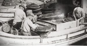 Der realistische Kritiker freilich ruft aus: „So sprechen einfache Leute nicht!“ Bloß dass es, selbst hätte er recht, vorbeiging’ an Charakter und Mär dieser Dichtung und allem, was uns hoffen läßt: D’Arrigos „einfache“ Menschen sind nicht einfach und schon gar nicht stumpf, niemals, mag ihr Schicksal sie noch so beuteln. Egal, in welcher Be-, ja Gedrücktheit sie leben, ganz wie die sterbenden Feren behalten auch sie sich Würde und Stolz. Von Klassenstolz ließe sich sprechen, doch ist’s „nur“ der ihres Fischerstands und sowieso zutiefst sizilianisch. Ins Schicksal ergeben sind sie allenfalls als Alte, denen die mit ergreifendsten Passagen gewidmet sind – jenen „Ohmahnen“ (nonnavi), die hinaus auf See nicht mehr können und morgens am Strand auf ihren verwitternden Stühlen sitzen, teils, weil klapprig wie die, hinausgeleitet werden mußten und schauen nun schweigend aufs Meer. Doch selbst sie sind nicht Opfer, sondern lehnen sich auf, jedenfalls manche, wie Caitanello, wenn er, dieser völlig Verrückte, diese Demütigung nicht mehr ertragen konnte, blindlings mit dieser Nußschale von Borietta hinausfuhr, aufs Meer, inmitten all dieser unendlichen Mengen von Feren, selbst wenn es ihn das Leben kostete, sofern es nur das eines Löwen war. Deshalb will ich auf keinen Fall von der großartigen Erzählung schweigen, die einen anderen Greis beschließen läßt, heimlich noch einmal in See zu stechen – endgültig im Wortsinn. Ferdinando Currò war allerdings nicht alleine verschwunden. Sebastiano Schirò, Vito Imbesi und Cono Ritàno (…) waren ebenfalls nicht mehr da, auch ihre Stühle waren ohne sie im Morgendämmer sichtbar geworden. Zugleich mit ihrem Verschwinden bemerkte man auch das Verschwinden der Borietta (…). Doch wer hatte gerudert?