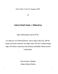 Hauptseite / Tagebuch Soeben — vor genau vierundzwanzig Jahren. - 30. Januar 2024 | 31. Januar 2024 - Alban Nikolai Herbst 1 minute read So, so gerne Vater zu sein — stolz, es zu sein – und dieser Frau unendlich dankbar. ANH
