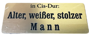 Diesen hübschen Sticker – stolz bin ich aufs C-Dur (Dur eben, nicht etwa moll) – habe ich mir fertigen lassen, um ihn auf Diskussionsveranstaltungen zu tragen; ich trüge ihn auch sonst, aber er stört die Perle an meinem Jackett. Im Winter allerdings paßt er richtig prima an den vorderen Mantelkragen. Er protestiert aber nicht allein gegen die Gender-/Transgender-Ideologie, sondern mit ihr gegen diese riesige Anhäufung eines Unrats, den die Universitäten-selbst in die Köpfe der Studierenden gegossen — und sich nun wundern, wenn die sich benehmen, wie es sie gelehrt ward. Von „Post-colonial“ bis „From the river to the sea“ werd ich gezwungenermaßen zum Zeugen einer wüst gewordenen Blödheit. Feministinnen, die das folternde, johlende Meuchelmorden der Hamas für Befreiungskampf halten oder halten wollen und offenbar alle nicht nur selbst endlich das Kopftuch und besser gleich die Burka tragen, sondern auch gerne zu Tode gesteinigt werden wollen – „Trefft meine Augen bitte , schlagt mir die Augen a u s!“, „Bitte, bitte, liebe Hamas, schneidet mir die Brüste ab, die ha’m mich eh behindert und lenken euch nur ab von unserm großen Ziel, dem Tode aller Juden“, „Vergewaltigt mich, vergewaltigt mich, das wird euch Kraft für euren Widerstand geben, ihr dürft mich auch gerne kill’n dabei“!, – Transpersonen und Schwule, die unbedingt an die Motorräder der Hamas- „Kämpfer“ gebunden und durch die Gassen Rafahs zu Tode geschleift werden wollen und vielleicht vorher noch kastriert, ohne Betäubung, macht sonst ja keinen Spaß Allah … und und und und und. Meine Fassungslosigkeit ist fast noch größer als deren IQ gering. Anders läßt sich das alles nicht erklären. Oder herrscht unter den jungen Intellektuellinnen und Intellektuellen eine Verblendung wie zu Anfang Weltkrieg I, um von der Anschlußgeilheit der deutschen Universitäten zu Hitlers Anfang zu schweigen? Denn selbstverständlich, ja!, i s t Netanjahu ein Verbrecher und die israelische, unter ihm!, Siedlungs“politik“ beschissen. Da ist sehr viel zu kritisieren, doch neuer Antisemitismus der komplett falsche Weg. Gingen und gehen denn n i c h t in Israel selbst Jüdinnen und Juden protestierend auf die Straßen? Wird alles, alles ausgeblendet.