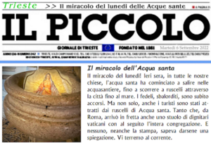 Ich wurde immer wütender. Und verzweifelt. Auch darum habe ich so lange hier geschwiegen. Auch aus eigener Seelenhygiene war es wichtig, mich nicht dauernd mit all diesem Schrecken zu befassen, der auf zynische Weise saukomisch aber ist, La umana commedia. Dante lacht durch die Zeiten bis hier, ein böses Lachen, in das Homer ich einstimmen höre, und leider auch Celine. — Im Angesichte alles dessen war es fürwahr nicht leicht, den Triestroman fertigzuschreiben, da er doch von Wundern erzählt, von deren e i n e m ganz besonders. Il miracolo di lunedì, die überlaufenden Weihwasserbecken: