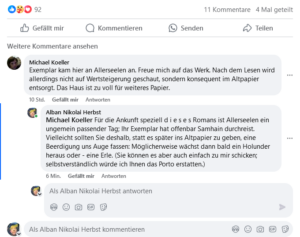 Also, wenn ich nicht bereit bin Literatur (!) aufzuheben, dann lese ich das Buch in einer Leseecke eines Buchladens stellenweise durch und kaufe es nicht. So ein Buch, wie dieses von ANH, in’s Altpapier“ werfen zu wollen geht garnicht. „Man könnte es auch verschenken oder spenden (zB Oxfam)…