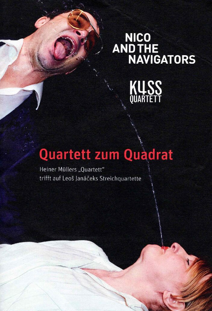 Seit der Premiere wälze ich mich auf der Frage herum: Wie geh ich damit um? Denn eigentlich bin ich von → dieser Theaterkompanie begeistert und war’s auch noch im ersten Teil ihrer neuen Produktion „Quartett zum Quadrat“ mit Heiner Müllers Theaterstück und Janáčeks beiden Streichquartetten. Was aber eine spannende, auch erhebende Erfahrung hätte werden können, wurde ganz in Heiner Müllers Sinn zu einer menschlichen Katastrophe – und der greise, in eine siebenunddreißig Jahre jüngere Frau unglücklich verliebte Komponist erhielt zum Korb posthum auch noch den Tritt. (De facto entzog sich Kamila Stösslová einer Entscheidung, hielt den ihr bis zu seinem Tod Verfallenen pragmatisch auf Distanz.) Der bereits zu Lebzeiten bis in seinen perfekt ausformulierten Sadismus nihilistische Müller wird, egal, wie sehr im Grabe längst verwest, über Janáčeks Briefe und Musik noch gefeixt haben. Ich sehe seine grinsende Fresse an Janáčeks Tränen sich laben. Was mich hier entsetzte, war nicht die Zumutung selbst, sondern daß ihr diese Inszenierung nichts entgegensetzt. Nico and the Navigators geben Müller anstelle der Sehnsucht eines Menschenrecht, über die sie sich zwar nicht amüsierten, doch sie ließen Müller auf sie pissen. Sonst hätte diese Performance nicht dem zynischen Sadisten, sondern dem Kummer Janáčeks das letzte Wort gegeben: